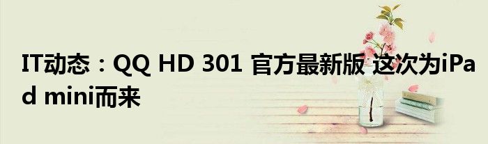 5G已經片區使用,很多小伙伴對通信這塊還不熟系!越來越多的人開始對IT、5G信息方面產生興趣,近來QQ HD 301 官方最新版 這次為iPad mini而來的話題也是引起了很多人的關注,那么既然現在大家都想要知道QQ HD 301 官方最新版 這次為iPad mini而來,小編今天就來給大家針對QQ HD 301 官方最新版 這次為iPad mini而來做個詳細介紹。