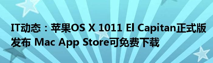 5G已經片區使用,很多小伙伴對通信這塊還不熟系!越來越多的人開始對IT、5G信息方面產生興趣,近來蘋果OS X 1011 El Capitan正式版發布 Mac App Store可免費下載的話題也是引起了很多人的關注,那么既然現在大家都想要知道蘋果OS X 1011 El Capitan正式版發布 Mac App Store可免費下載,小編今天就來給大家針對蘋果OS X 1011 El Capitan正式版發布 Mac App Store可免費下載做個詳細介紹。