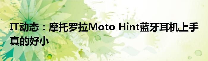5G已經片區使用,很多小伙伴對通信這塊還不熟系!越來越多的人開始對IT、5G信息方面產生興趣,近來摩托羅拉Moto Hint藍牙耳機上手 真的好小的話題也是引起了很多人的關注,那么既然現在大家都想要知道摩托羅拉Moto Hint藍牙耳機上手 真的好小,小編今天就來給大家針對摩托羅拉Moto Hint藍牙耳機上手 真的好小做個詳細介紹。