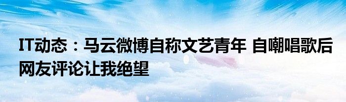 IT之家10月15日消息在今年的云棲大會上,馬云又唱歌了,而且這次還是和李健同臺合唱。今天馬云微博發布消息,這幾天一直在看網上各種對其在音樂節唱歌評價,表示有些評論讓其“絕望”。馬云稱,自己內心深處原來一直活著一個“愛玩的文藝青年”,要給他一個機會釋放自我,同時為下半輩子找個就業方向。