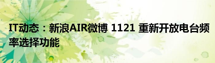 5G已經片區使用,很多小伙伴對通信這塊還不熟系!越來越多的人開始對IT、5G信息方面產生興趣,近來新浪AIR微博 1121 重新開放電臺頻率選擇功能的話題也是引起了很多人的關注,那么既然現在大家都想要知道新浪AIR微博 1121 重新開放電臺頻率選擇功能,小編今天就來給大家針對新浪AIR微博 1121 重新開放電臺頻率選擇功能做個詳細介紹。
