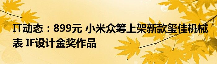 5G已經片區使用,很多小伙伴對通信這塊還不熟系!越來越多的人開始對IT、5G信息方面產生興趣,近來899元 小米眾籌上架新款璽佳機械表 IF設計金獎作品的話題也是引起了很多人的關注,那么既然現在大家都想要知道899元 小米眾籌上架新款璽佳機械表 IF設計金獎作品,小編今天就來給大家針對899元 小米眾籌上架新款璽佳機械表 IF設計金獎作品做個詳細介紹。