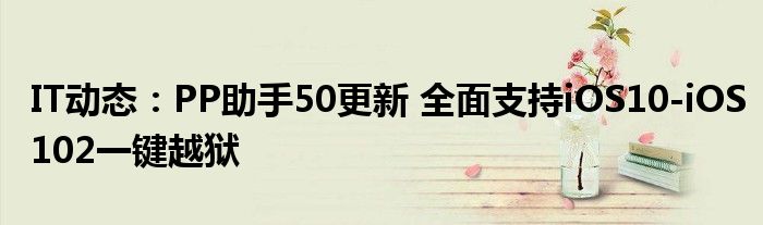 5G已經片區使用,很多小伙伴對通信這塊還不熟系!越來越多的人開始對IT、5G信息方面產生興趣,近來PP助手50更新 全面支持iOS10-iOS102一鍵越獄的話題也是引起了很多人的關注,那么既然現在大家都想要知道PP助手50更新 全面支持iOS10-iOS102一鍵越獄,小編今天就來給大家針對PP助手50更新 全面支持iOS10-iOS102一鍵越獄做個詳細介紹。