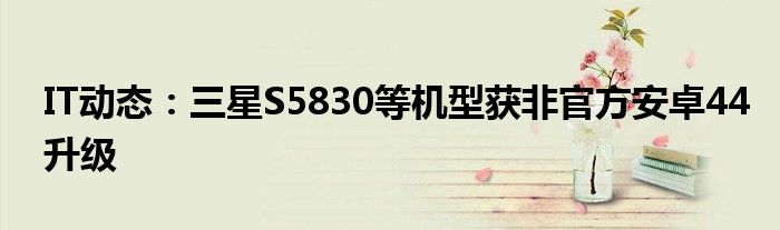 5G已經片區使用,很多小伙伴對通信這塊還不熟系!越來越多的人開始對IT、5G信息方面產生興趣,近來三星S5830等機型獲非官方安卓44升級的話題也是引起了很多人的關注,那么既然現在大家都想要知道三星S5830等機型獲非官方安卓44升級,小編今天就來給大家針對三星S5830等機型獲非官方安卓44升級做個詳細介紹。
