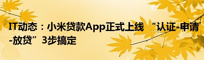 5G已經(jīng)片區(qū)使用,很多小伙伴對通信這塊還不熟系!越來越多的人開始對IT、5G信息方面產生興趣,近來小米貸款App正式上線 “認證-申請-放貸”3步搞定的話題也是引起了很多人的關注,那么既然現(xiàn)在大家都想要知道小米貸款App正式上線 “認證-申請-放貸”3步搞定,小編今天就來給大家針對小米貸款App正式上線 “認證-申請-放貸”3步搞定做個詳細介紹。