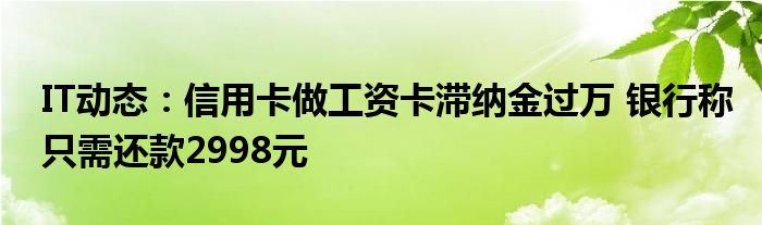 5G已經(jīng)片區(qū)使用,很多小伙伴對通信這塊還不熟系!越來越多的人開始對IT、5G信息方面產(chǎn)生興趣,近來信用卡做工資卡滯納金過萬 銀行稱只需還款2998元的話題也是引起了很多人的關(guān)注,那么既然現(xiàn)在大家都想要知道信用卡做工資卡滯納金過萬 銀行稱只需還款2998元,小編今天就來給大家針對信用卡做工資卡滯納金過萬 銀行稱只需還款2998元做個(gè)詳細(xì)介紹。