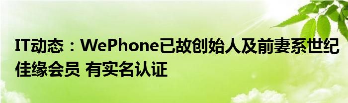 5G已經片區使用,很多小伙伴對通信這塊還不熟系!越來越多的人開始對IT、5G信息方面產生興趣,近來WePhone已故創始人及前妻系世紀佳緣會員 有實名認證的話題也是引起了很多人的關注,那么既然現在大家都想要知道WePhone已故創始人及前妻系世紀佳緣會員 有實名認證,小編今天就來給大家針對WePhone已故創始人及前妻系世紀佳緣會員 有實名認證做個詳細介紹。