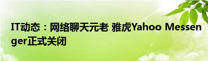 5G已經片區使用,很多小伙伴對通信這塊還不熟系!越來越多的人開始對IT、5G信息方面產生興趣,近來網絡聊天元老 雅虎Yahoo Messenger正式關閉的話題也是引起了很多人的關注,那么既然現在大家都想要知道網絡聊天元老 雅虎Yahoo Messenger正式關閉,小編今天就來給大家針對網絡聊天元老 雅虎Yahoo Messenger正式關閉做個詳細介紹。