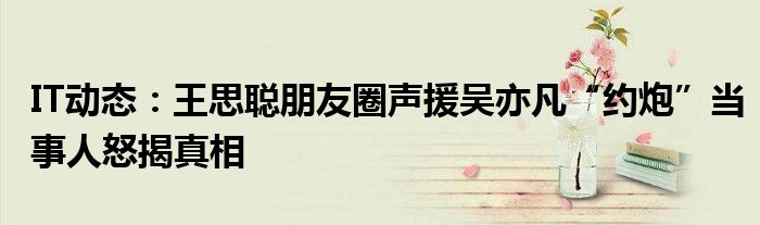 6月16日消息,近日,網上曝出當紅明星吳亦凡“約炮”的視頻并引發廣泛關注,今日又有微博博主貼出疑似王思聰朋友圈的截圖,其內容似乎是在聲援吳亦凡:“約個炮一堆圣母在那兒逼逼,難道他要自己擼管嘛!”IT之家查詢發現,目前該微博已被博主刪除。