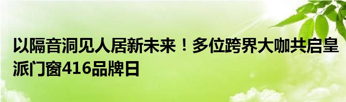 公益不息,隔音不止!“隔音PRO-創(chuàng)造美好生活聲環(huán)境”皇派門窗416品牌日云發(fā)布會即將啟動,隔音研究院的成立將為消費(fèi)者和行業(yè)帶來哪些影響?各界專家和嘉賓將碰撞出怎樣的觀察和思考?皇派未來在隔音領(lǐng)域還會有哪些布局?4月16日,重磅揭曉!