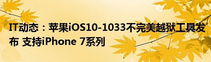 5G已經片區使用,很多小伙伴對通信這塊還不熟系!越來越多的人開始對IT、5G信息方面產生興趣,近來蘋果iOS10-1033不完美越獄工具發布 支持iPhone 7系列的話題也是引起了很多人的關注,那么既然現在大家都想要知道蘋果iOS10-1033不完美越獄工具發布 支持iPhone 7系列,小編今天就來給大家針對蘋果iOS10-1033不完美越獄工具發布 支持iPhone 7系列做個詳細介紹。