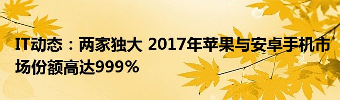 5G已經片區使用,很多小伙伴對通信這塊還不熟系!越來越多的人開始對IT、5G信息方面產生興趣,近來兩家獨大 2017年蘋果與安卓手機市場份額高達999%的話題也是引起了很多人的關注,那么既然現在大家都想要知道兩家獨大 2017年蘋果與安卓手機市場份額高達999%,小編今天就來給大家針對兩家獨大 2017年蘋果與安卓手機市場份額高達999%做個詳細介紹。