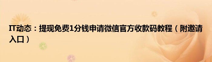 5G已經(jīng)片區(qū)使用,很多小伙伴對(duì)通信這塊還不熟系!越來越多的人開始對(duì)IT、5G信息方面產(chǎn)生興趣,近來提現(xiàn)免費(fèi)1分錢申請(qǐng)微信官方收款碼教程(附邀請(qǐng)入口)的話題也是引起了很多人的關(guān)注,那么既然現(xiàn)在大家都想要知道提現(xiàn)免費(fèi)1分錢申請(qǐng)微信官方收款碼教程(附邀請(qǐng)入口),小編今天就來給大家針對(duì)提現(xiàn)免費(fèi)1分錢申請(qǐng)微信官方收款碼教程(附邀請(qǐng)入口)做個(gè)詳細(xì)介紹。