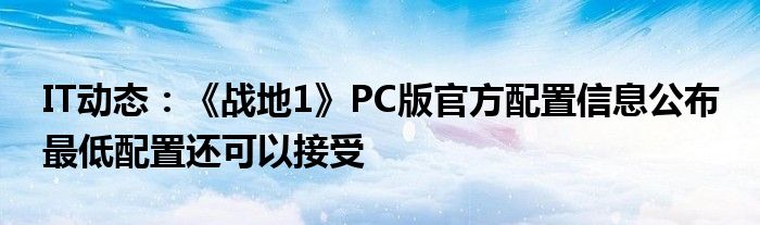 5G已經片區使用,很多小伙伴對通信這塊還不熟系!越來越多的人開始對IT、5G信息方面產生興趣,近來《戰地1》PC版官方配置信息公布 最低配置還可以接受的話題也是引起了很多人的關注,那么既然現在大家都想要知道《戰地1》PC版官方配置信息公布 最低配置還可以接受,小編今天就來給大家針對《戰地1》PC版官方配置信息公布 最低配置還可以接受做個詳細介紹。