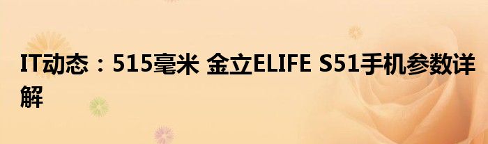 5G已經片區使用,很多小伙伴對通信這塊還不熟系!越來越多的人開始對IT、5G信息方面產生興趣,近來515毫米 金立ELIFE S51手機參數詳解的話題也是引起了很多人的關注,那么既然現在大家都想要知道515毫米 金立ELIFE S51手機參數詳解,小編今天就來給大家針對515毫米 金立ELIFE S51手機參數詳解做個詳細介紹。