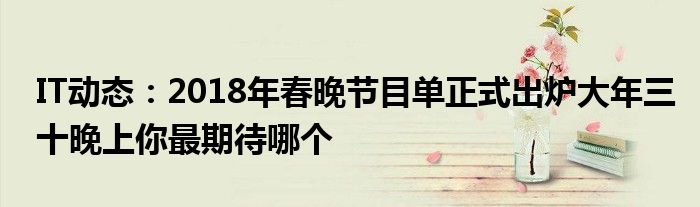 IT之家2月14日消息就在剛剛,@春晚正式公布了2018年春晚節目單!