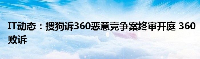 IT之家訊 11月18日消息搜狗訴奇虎360的不正當(dāng)競爭案于昨天在北京知識產(chǎn)權(quán)法院終審宣判,360敗訴。
