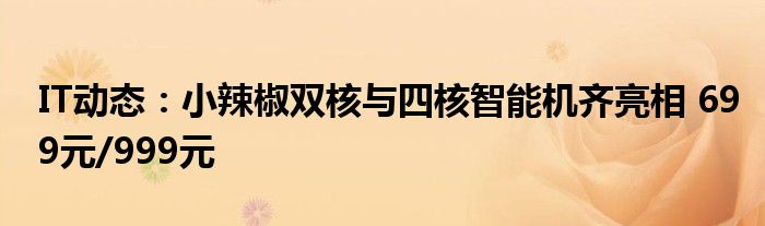 5G已經(jīng)片區(qū)使用,很多小伙伴對(duì)通信這塊還不熟系!越來越多的人開始對(duì)IT、5G信息方面產(chǎn)生興趣,近來小辣椒雙核與四核智能機(jī)齊亮相 699元/999元的話題也是引起了很多人的關(guān)注,那么既然現(xiàn)在大家都想要知道小辣椒雙核與四核智能機(jī)齊亮相 699元/999元,小編今天就來給大家針對(duì)小辣椒雙核與四核智能機(jī)齊亮相 699元/999元做個(gè)詳細(xì)介紹。
