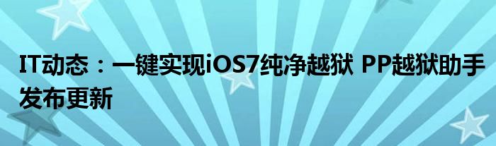 5G已經片區使用,很多小伙伴對通信這塊還不熟系!越來越多的人開始對IT、5G信息方面產生興趣,近來一鍵實現iOS7純凈越獄 PP越獄助手發布更新的話題也是引起了很多人的關注,那么既然現在大家都想要知道一鍵實現iOS7純凈越獄 PP越獄助手發布更新,小編今天就來給大家針對一鍵實現iOS7純凈越獄 PP越獄助手發布更新做個詳細介紹。