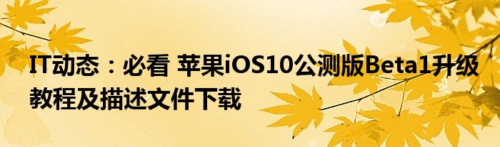 5G已經片區使用,很多小伙伴對通信這塊還不熟系!越來越多的人開始對IT、5G信息方面產生興趣,近來必看 蘋果iOS10公測版Beta1升級教程及描述文件下載的話題也是引起了很多人的關注,那么既然現在大家都想要知道必看 蘋果iOS10公測版Beta1升級教程及描述文件下載,小編今天就來給大家針對必看 蘋果iOS10公測版Beta1升級教程及描述文件下載做個詳細介紹。
