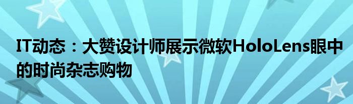5G已經片區使用,很多小伙伴對通信這塊還不熟系!越來越多的人開始對IT、5G信息方面產生興趣,近來大贊設計師展示微軟HoloLens眼中的時尚雜志購物的話題也是引起了很多人的關注,那么既然現在大家都想要知道大贊設計師展示微軟HoloLens眼中的時尚雜志購物,小編今天就來給大家針對大贊設計師展示微軟HoloLens眼中的時尚雜志購物做個詳細介紹。