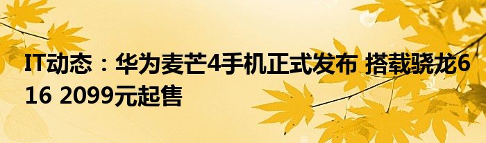 5G已經片區使用,很多小伙伴對通信這塊還不熟系!越來越多的人開始對IT、5G信息方面產生興趣,近來華為麥芒4手機正式發布 搭載驍龍616 2099元起售的話題也是引起了很多人的關注,那么既然現在大家都想要知道華為麥芒4手機正式發布 搭載驍龍616 2099元起售,小編今天就來給大家針對華為麥芒4手機正式發布 搭載驍龍616 2099元起售做個詳細介紹。