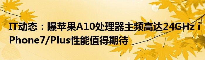 5G已經片區使用,很多小伙伴對通信這塊還不熟系!越來越多的人開始對IT、5G信息方面產生興趣,近來曝蘋果A10處理器主頻高達24GHz iPhone7/Plus性能值得期待的話題也是引起了很多人的關注,那么既然現在大家都想要知道曝蘋果A10處理器主頻高達24GHz iPhone7/Plus性能值得期待,小編今天就來給大家針對曝蘋果A10處理器主頻高達24GHz iPhone7/Plus性能值得期待做個詳細介紹。