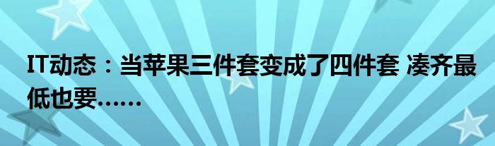 5G已經(jīng)片區(qū)使用,很多小伙伴對通信這塊還不熟系!越來越多的人開始對IT、5G信息方面產(chǎn)生興趣,近來當蘋果三件套變成了四件套 湊齊最低也要……的話題也是引起了很多人的關注,那么既然現(xiàn)在大家都想要知道當蘋果三件套變成了四件套 湊齊最低也要……,小編今天就來給大家針對當蘋果三件套變成了四件套 湊齊最低也要……做個詳細介紹。