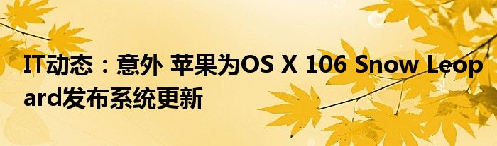 5G已經片區使用,很多小伙伴對通信這塊還不熟系!越來越多的人開始對IT、5G信息方面產生興趣,近來意外 蘋果為OS X 106 Snow Leopard發布系統更新的話題也是引起了很多人的關注,那么既然現在大家都想要知道意外 蘋果為OS X 106 Snow Leopard發布系統更新,小編今天就來給大家針對意外 蘋果為OS X 106 Snow Leopard發布系統更新做個詳細介紹。