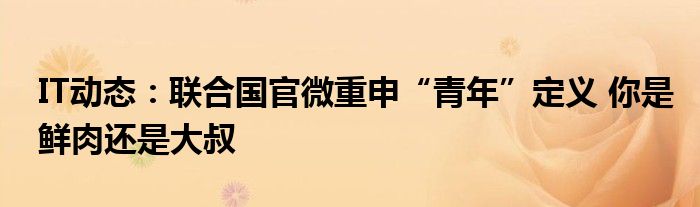 5G已經片區使用,很多小伙伴對通信這塊還不熟系!越來越多的人開始對IT、5G信息方面產生興趣,近來聯合國官微重申“青年”定義 你是鮮肉還是大叔的話題也是引起了很多人的關注,那么既然現在大家都想要知道聯合國官微重申“青年”定義 你是鮮肉還是大叔,小編今天就來給大家針對聯合國官微重申“青年”定義 你是鮮肉還是大叔做個詳細介紹。