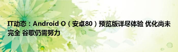 5G已經(jīng)片區(qū)使用,很多小伙伴對(duì)通信這塊還不熟系!越來越多的人開始對(duì)IT、5G信息方面產(chǎn)生興趣,近來Android O(安卓80)預(yù)覽版詳盡體驗(yàn) 優(yōu)化尚未完全 谷歌仍需努力的話題也是引起了很多人的關(guān)注,那么既然現(xiàn)在大家都想要知道Android O(安卓80)預(yù)覽版詳盡體驗(yàn) 優(yōu)化尚未完全 谷歌仍需努力,小編今天就來給大家針對(duì)Android O(安卓80)預(yù)覽版詳盡體驗(yàn) 優(yōu)化尚未完全 谷歌仍需努力做個(gè)詳細(xì)介紹。