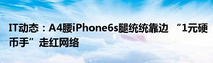 5G已經片區使用,很多小伙伴對通信這塊還不熟系!越來越多的人開始對IT、5G信息方面產生興趣,近來A4腰iPhone6s腿統統靠邊 “1元硬幣手”走紅網絡的話題也是引起了很多人的關注,那么既然現在大家都想要知道A4腰iPhone6s腿統統靠邊 “1元硬幣手”走紅網絡,小編今天就來給大家針對A4腰iPhone6s腿統統靠邊 “1元硬幣手”走紅網絡做個詳細介紹。