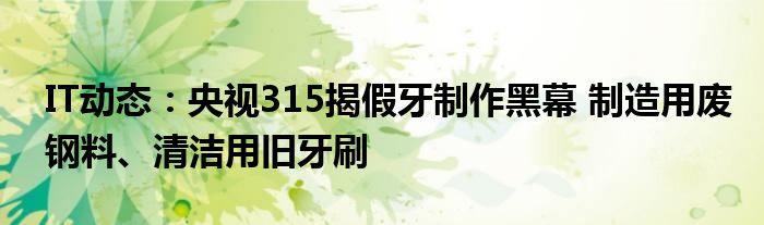 5G已經片區使用,很多小伙伴對通信這塊還不熟系!越來越多的人開始對IT、5G信息方面產生興趣,近來央視315揭假牙制作黑幕 制造用廢鋼料、清潔用舊牙刷的話題也是引起了很多人的關注,那么既然現在大家都想要知道央視315揭假牙制作黑幕 制造用廢鋼料、清潔用舊牙刷,小編今天就來給大家針對央視315揭假牙制作黑幕 制造用廢鋼料、清潔用舊牙刷做個詳細介紹。