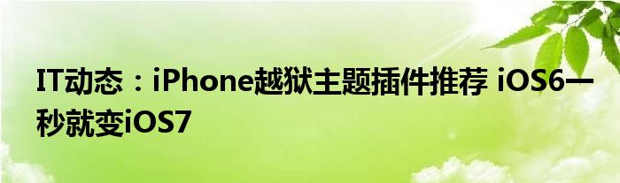 5G已經(jīng)片區(qū)使用,很多小伙伴對通信這塊還不熟系!越來越多的人開始對IT、5G信息方面產(chǎn)生興趣,近來iPhone越獄主題插件推薦 iOS6一秒就變iOS7的話題也是引起了很多人的關(guān)注,那么既然現(xiàn)在大家都想要知道iPhone越獄主題插件推薦 iOS6一秒就變iOS7,小編今天就來給大家針對iPhone越獄主題插件推薦 iOS6一秒就變iOS7做個詳細(xì)介紹。