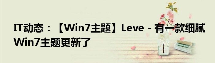 5G已經片區使用,很多小伙伴對通信這塊還不熟系!越來越多的人開始對IT、5G信息方面產生興趣,近來【Win7主題】Leve - 有一款細膩Win7主題更新了的話題也是引起了很多人的關注,那么既然現在大家都想要知道【Win7主題】Leve - 有一款細膩Win7主題更新了,小編今天就來給大家針對【Win7主題】Leve - 有一款細膩Win7主題更新了做個詳細介紹。
