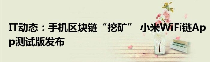 IT之家4月19日消息今天小米悄然發布了小米WiFi鏈Android(Beta)測試版App,手機又可以進行一項“挖礦”業務了。