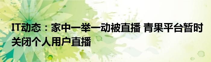 5G已經片區使用,很多小伙伴對通信這塊還不熟系!越來越多的人開始對IT、5G信息方面產生興趣,近來家中一舉一動被直播 青果平臺暫時關閉個人用戶直播的話題也是引起了很多人的關注,那么既然現在大家都想要知道家中一舉一動被直播 青果平臺暫時關閉個人用戶直播,小編今天就來給大家針對家中一舉一動被直播 青果平臺暫時關閉個人用戶直播做個詳細介紹。