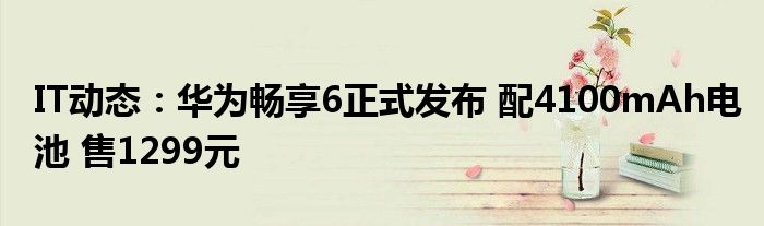 5G已經(jīng)片區(qū)使用,很多小伙伴對通信這塊還不熟系!越來越多的人開始對IT、5G信息方面產(chǎn)生興趣,近來華為暢享6正式發(fā)布 配4100mAh電池 售1299元的話題也是引起了很多人的關(guān)注,那么既然現(xiàn)在大家都想要知道華為暢享6正式發(fā)布 配4100mAh電池 售1299元,小編今天就來給大家針對華為暢享6正式發(fā)布 配4100mAh電池 售1299元做個詳細介紹。