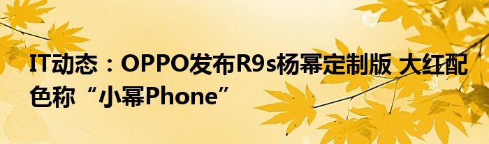 5G已經片區使用,很多小伙伴對通信這塊還不熟系!越來越多的人開始對IT、5G信息方面產生興趣,近來OPPO發布R9s楊冪定制版 大紅配色稱“小冪Phone”的話題也是引起了很多人的關注,那么既然現在大家都想要知道OPPO發布R9s楊冪定制版 大紅配色稱“小冪Phone”,小編今天就來給大家針對OPPO發布R9s楊冪定制版 大紅配色稱“小冪Phone”做個詳細介紹。