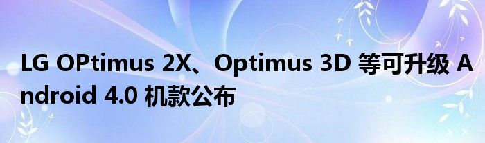 當(dāng)各大品牌已公布可升級 Android 4.0 的手機(jī)時,LG 還未有公布,更有謠言指出 LG 不會對之前推出的手機(jī)進(jìn)行更新,還好近日 LG 終于公布首批可升級 Android 4.0 的機(jī)款,當(dāng)中有 Optimus