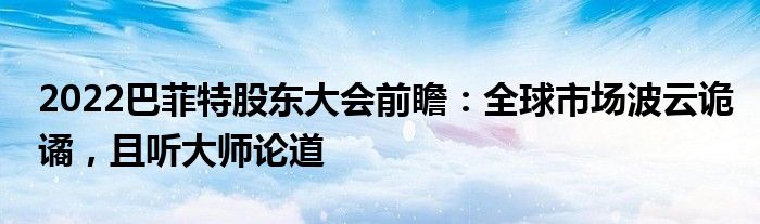 2020年新冠疫情沖擊以來,全球市場在經(jīng)歷了溫和的2021后,又迎來了更加復(fù)雜的2022年。俄烏戰(zhàn)爭引發(fā)的全球地緣大博弈、能源危機(jī)和糧食危機(jī)帶來的經(jīng)濟(jì)滯漲前景、疫情對(duì)全球核心供應(yīng)鏈的沖擊;走下神壇的納斯達(dá)克,深陷泥潭的A股,飆漲的美債利率……面對(duì)當(dāng)前空前復(fù)雜的宏觀局勢,“股神”巴菲特會(huì)帶給投資者哪些分享呢?
