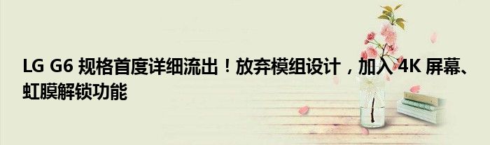 mAh),已是明年手機頂級的規(guī)格。至于拍攝規(guī)格方面,LG G6 傳聞會配備 2,400 萬像素主相機及 700 萬像素前相機,前后相機均會加入 LED 補光燈。預(yù)計拍攝質(zhì)素會比 G5 提升不少。
