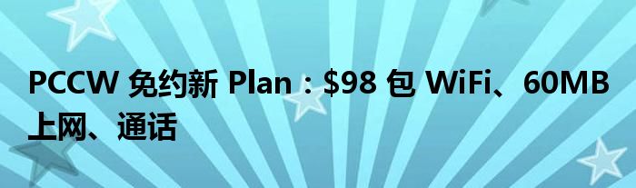 PCCW 免約新 Plan:$98 包 WiFi、60MB 上網(wǎng)、通話