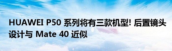 根據(jù)海外消息的報(bào)導(dǎo),HUAWEI P50 系列將有三款機(jī)型,分別是 6.1″ P50、6.6″ P50 Pro 及 6.8″ P50 Pro+。