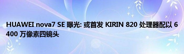 近日網路上不斷曝光 HUAWEI nova 7 的資料,不過除了 nova 7 之外,此系列的另一款新機 nova 7 SE 相繼曝光,更有傳 nova 7 將會一整個系列同步登場,當中包括支援 4G /5G 的手機,而 nova 7 SE 更有望首發支援 5G 的中階處理器 KIRIN 820。