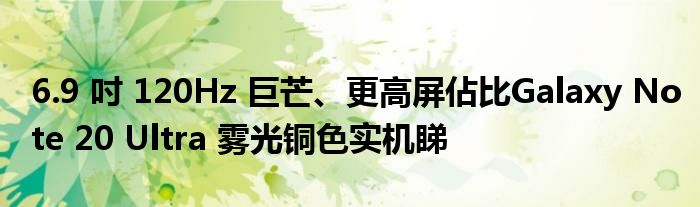 Galaxy Note 20 Ultra 配備了 6.9 吋 Dynamic AMOLED 2x 螢幕,實機相片可以看到,其正面屏佔比特別在四邊收窄表現,較前代又有所改進;霧光銅色款機背有類似磨砂效果處理,反光度較低亦不易沾上指紋,機背變焦三鏡模組的體積,亦較同廠上半年旗艦 S20 Ultra 為少。