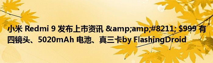 小米最新在推出了 Redmi 9 手機。只售港幣 999,但仍然配備有四鏡頭、真三卡、5020mAh 電池,還有 1080p FHD+ 螢幕等實用規格。上手體驗是怎樣的呢?立即去片啦!