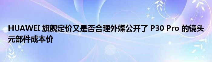 雖然 HUAWEI P30 Pro 要到本週后期才在發(fā)布,不過現(xiàn)時市面上已開始預受預訂,P30 Pro 預訂價為$7,500及$8,500﹐可有網(wǎng)友認為今次 P30 Pro 的售價比上代略高一點,相信令售價提高的主因是,搭載在 P30 Pro 的鏡頭元部件。近日有外媒公開了 P30 Pro 的鏡頭元部件的成本價,原來是眾多智能手機中最高!