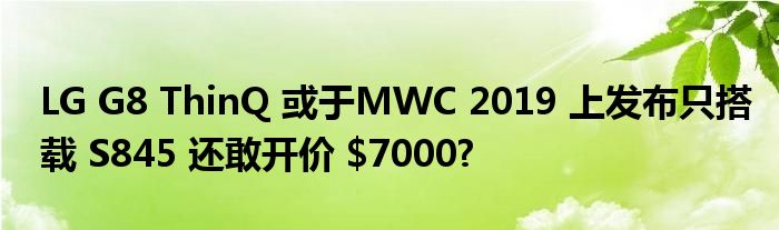 引述 PhoneArena 的消息指出,LG G8 ThinQ 將會是首款搭載4K 屏幕的LG 手機,另還有望支援外接屏幕,這或會與 ROG Phone 的屏幕配件功能近似。不過可惜是它只搭載s845 處理器,而設計方面更有資料顯示將會沿用 LG G7 的瀏海屏及雙鏡頭設計,能否與同期的新旗艦競爭確實存疑。