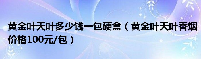 大家好,綜合小編來為大家解答以上問題。黃金葉天葉多少錢一包硬盒,黃金葉天葉香煙價格100元/包很多人還不知道,現(xiàn)在讓我們一起來看看吧!